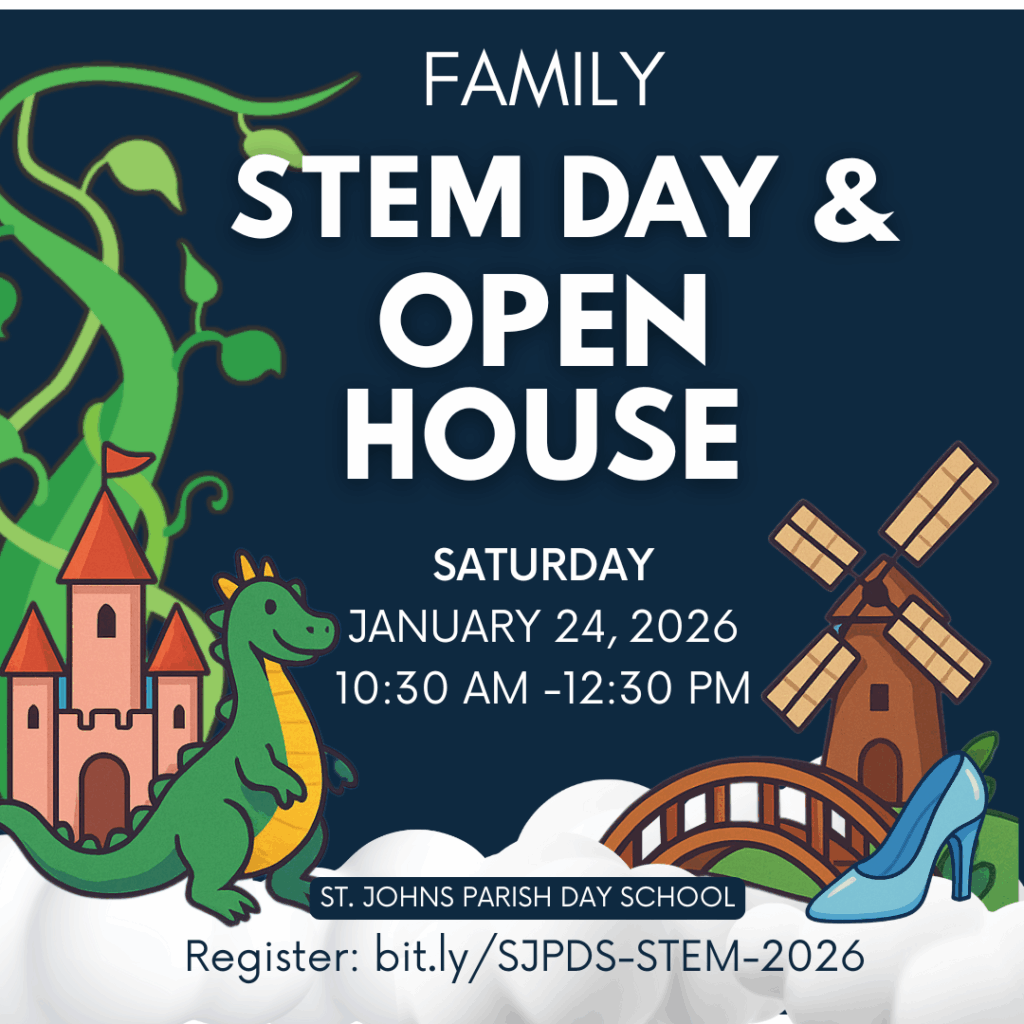 SJPDS is thrilled to be hosting our next Open House on Saturday, January 24th, from 10:30 AM to 12:30 PM! This Open House will guide families through a tour of our campus, explain our incredible curriculum, allow families to meet Faculty and Staff, and ask any questions about the St. John’s Experience. This Open House is also a chance for families, new and experienced, to check out our STEM program through fun, interactive, and educational activities! We will have various activities for children ages 3-11, set up throughout campus that showcase our STEM program. We encourage new families to stay after their tour and have a fun morning of STEM with SJPDS! Registration is REQUIRED for this event. Please see below for Registration Options.